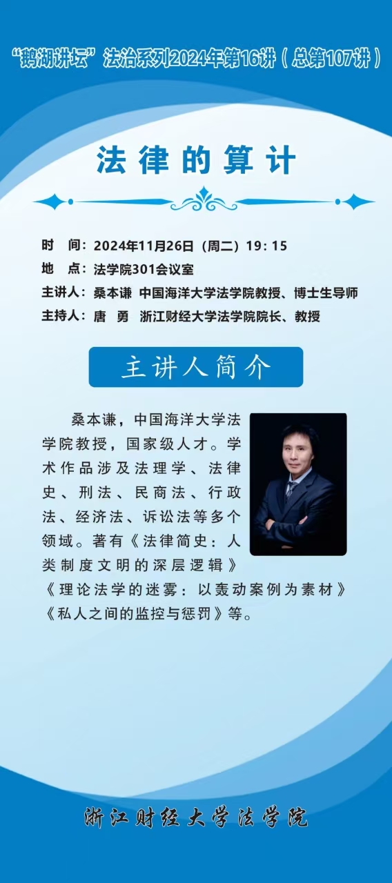 “鹅湖讲坛”法治系列2024年第16讲(总第107讲)中国海洋大学桑本谦教授