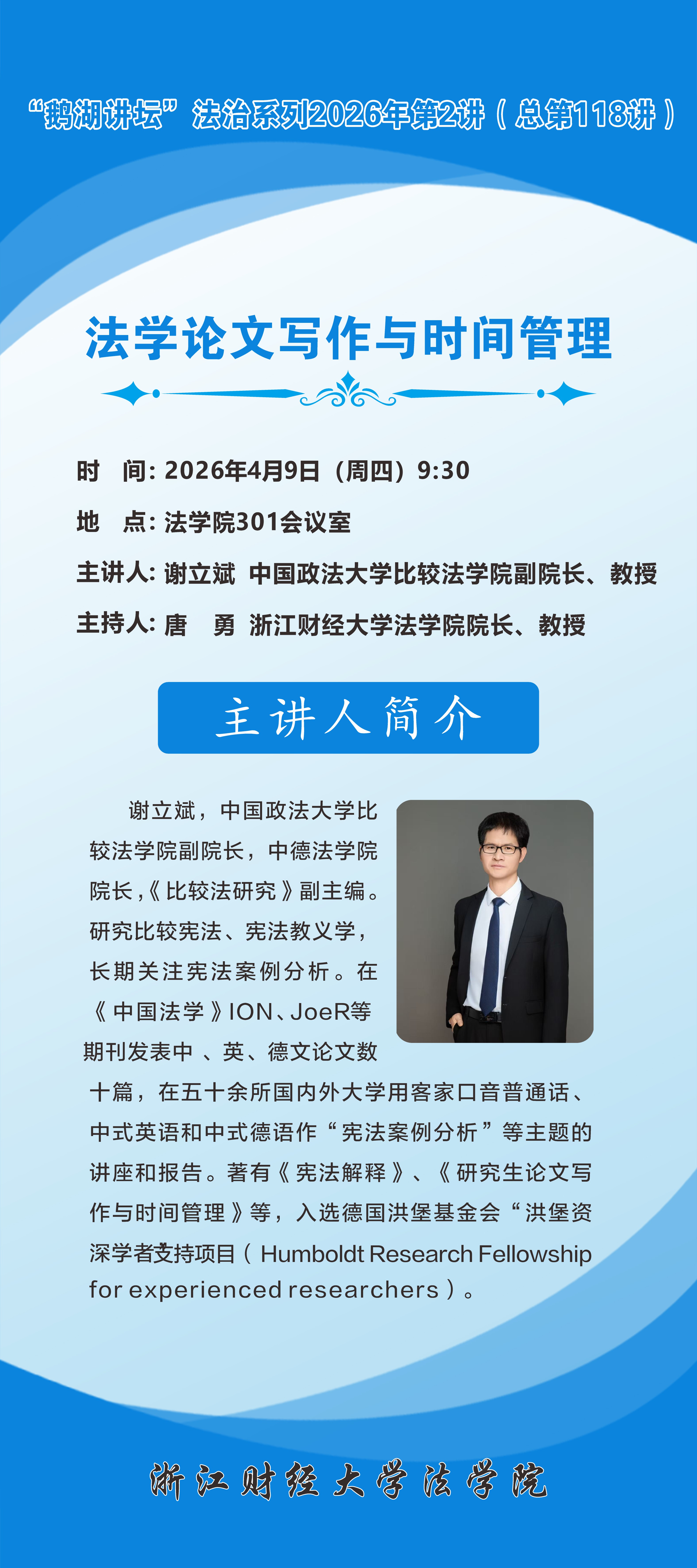 下一条:“鹅湖讲坛”法治系列2026年第1讲(总第117讲)南京大学冯洁语教授