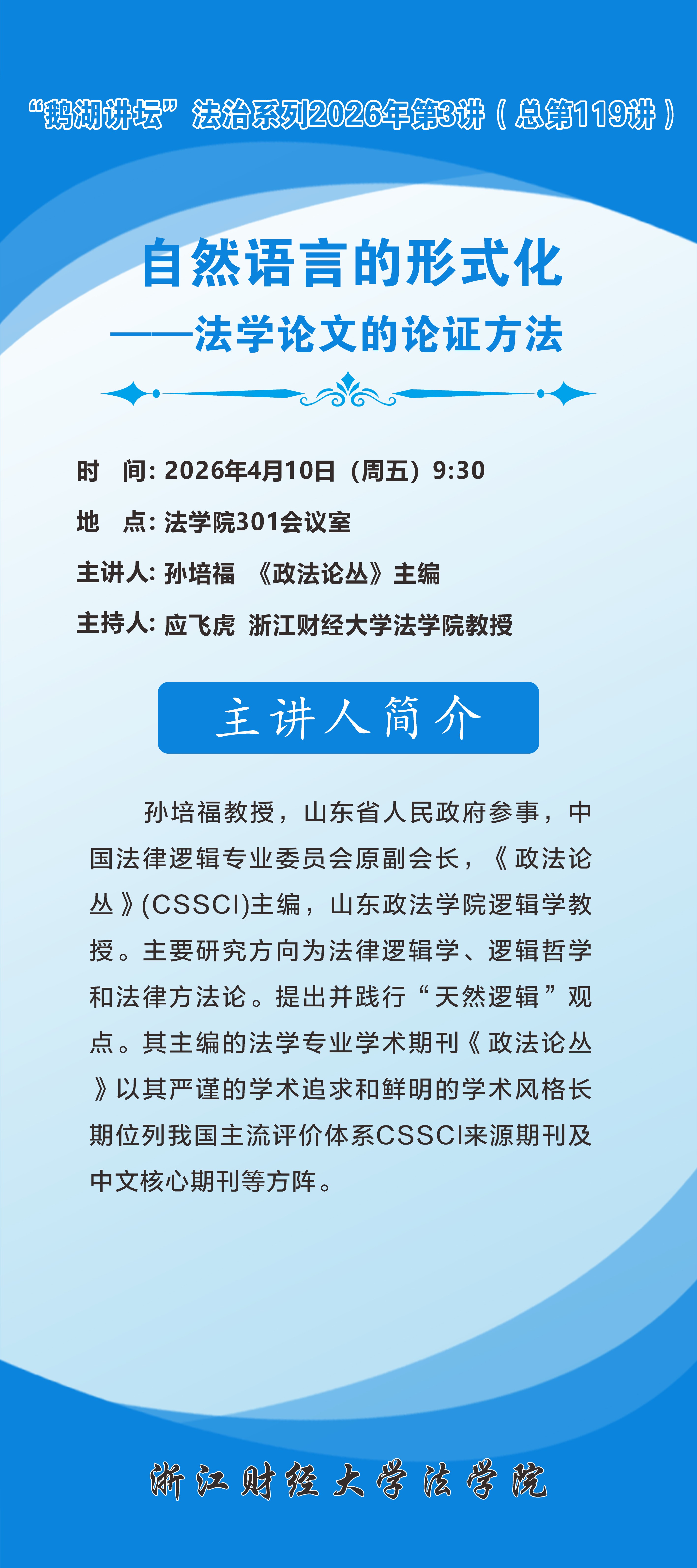 “鹅湖讲坛”法治系列2026年第3讲(总第119讲)《政法论丛》主编孙培福教授