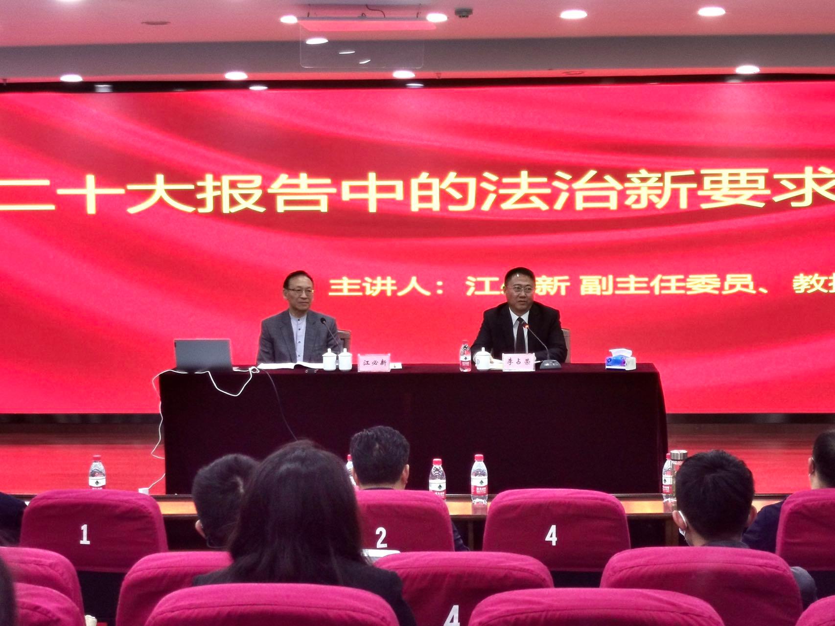 11月7日,全国人大宪法和法律委员会副主任委员江必新教授应邀做客“鹅湖讲台”,为足球推荐 师生带来一场以“二十大报告中的法治新要求”为主题的学术讲座。本次讲座是足球推荐 建院20周年学术系列讲座第15讲,由足球推荐 副校长李占荣教授主持。讲座在学术中心第四报告厅举行,足球推荐 师生聆听了讲座。讲座中,江必新教授从二十大报告中法治的要求出发,多角度阐述了二十大报告中法治的重要意义。江教授以“坚持全面依法治国、推进法治...