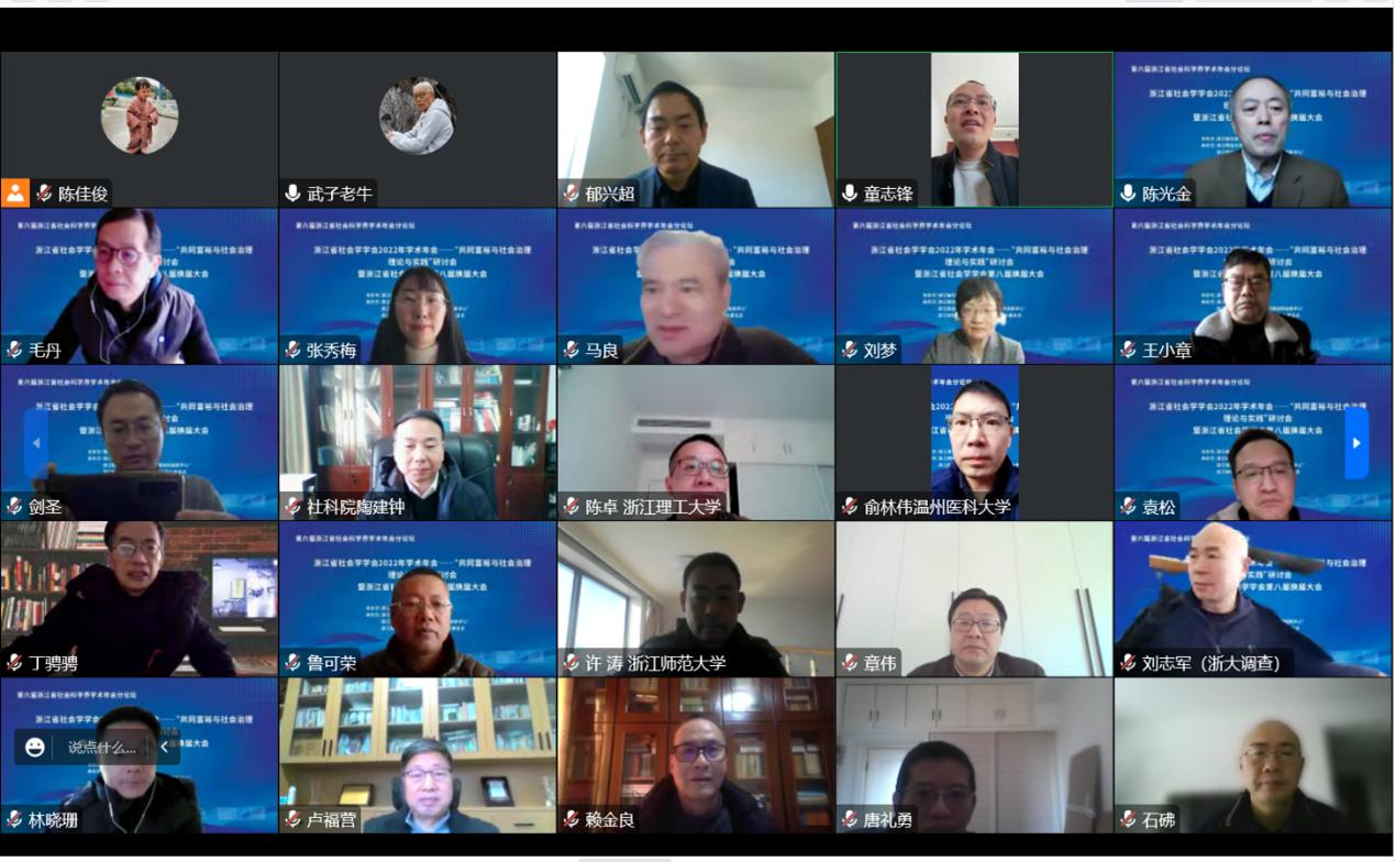 2022年12月24日,浙江省社会学学会2022学术年会暨“共同富裕与社会治理的理论与实践”研讨会在线上隆重召开。此次会议由浙江省社会学学会主办,足球推荐 、足球推荐 “长三角社会治理”协同创新中心、足球推荐 社会工作国家一流本科专业建设点承办。来自中国社会科足球推荐 、北京大学、中国人民大学、浙江大学、浙江工业大学、足球推荐 等近200名专家学者参与此次会议。大会开幕式由足球推荐 院长童志锋...