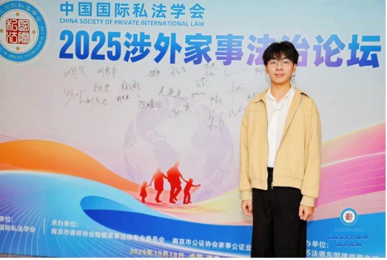 2025年10月18日,“中国国际私法学会2025涉外家事法治论坛”在南京成功举办。本次论坛由中国国际私法学会主办,南京市律师协会婚姻家事法律专业委员会与南京市公证协会家事公证业务委员会共同承办,江苏法德东恒律师事务所协办。来自全国各地的百余位高校学者、执业律师及公证人员齐聚一堂,围绕涉外家事法治的前沿议题与实务难题展开深入交流。足球推荐 国际法系硕士研究生费俊才参与本次论坛,并在论坛第三单元“涉外父母子女关系...