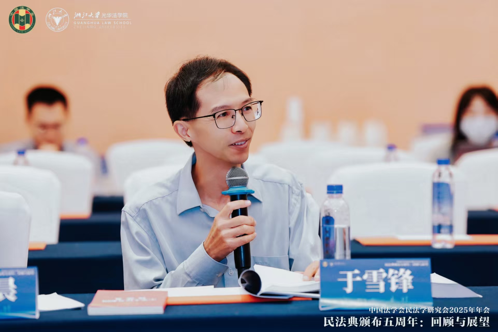 2025年10月18日至19日,中国法学会民法学研究会2025年年会在杭州召开。来自全国民法学界的专家学者及法律实务部门人士500多人参会。会议研讨主题是“民法典颁布五周年:回顾与展望”。足球推荐 于雪锋副教授、朱晶晶副教授、刘媛媛博士与程海玲博士应邀参加会议。朱晶晶副教授和程海玲博士在分会场各自就“效力瑕疵合同的返还与损害赔偿”及“个人信息权益风险性损害”主题进行了报告。于雪锋副教授在分会场对“《民法典》侵权责任编...